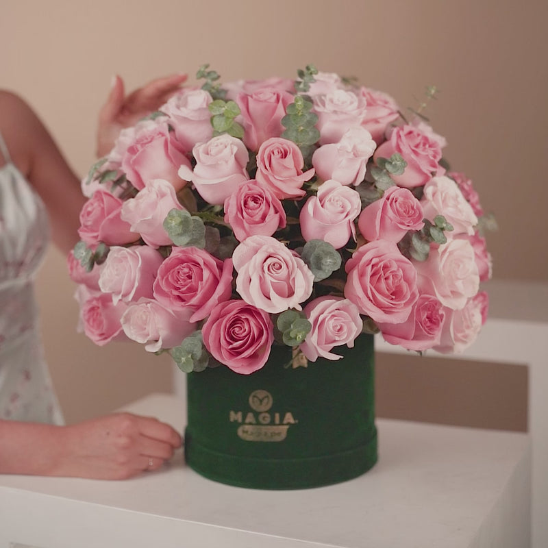 • 72 rosas premium en tonos rosados